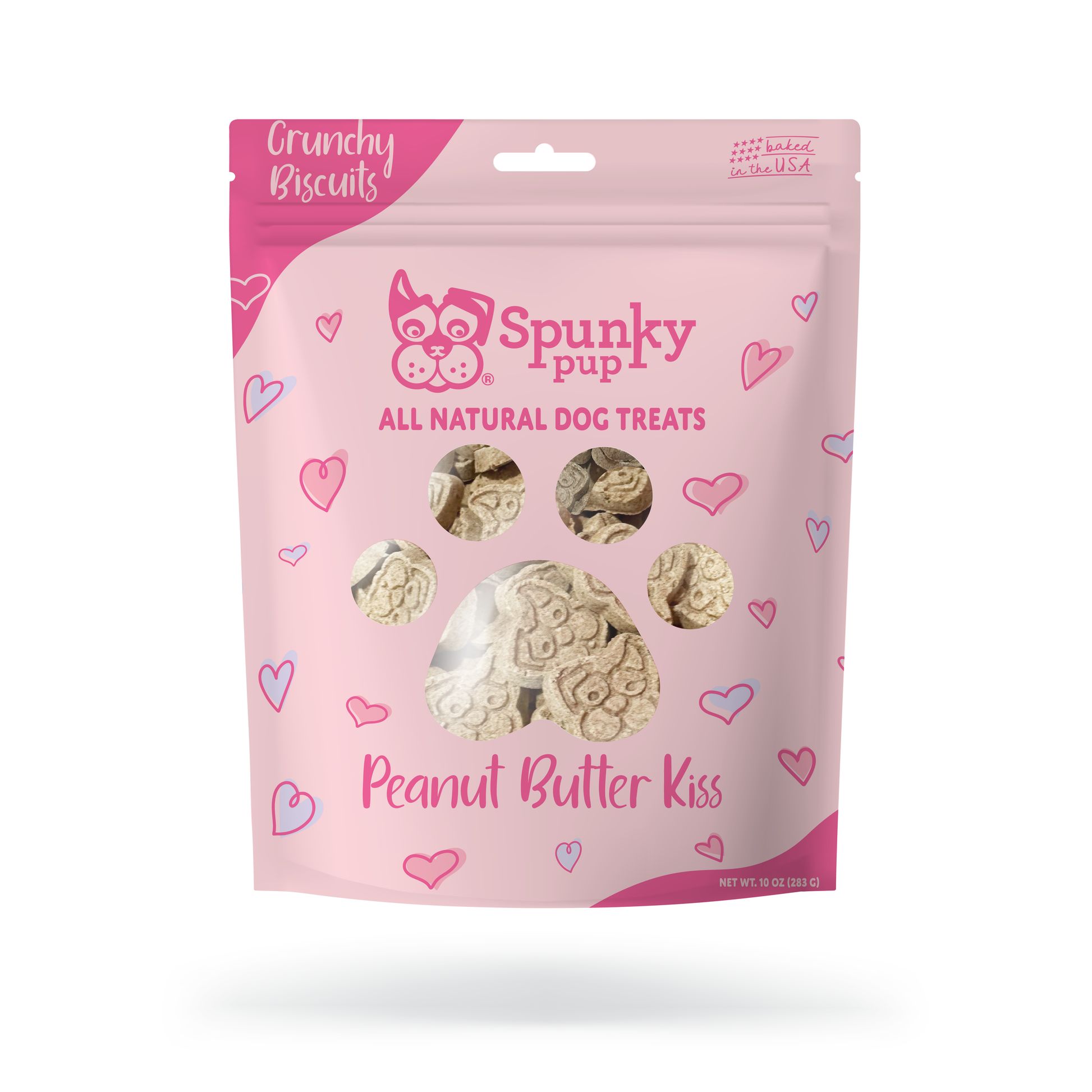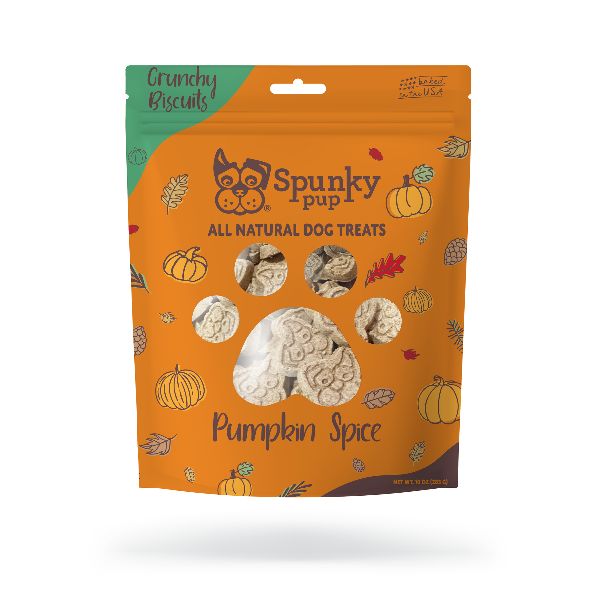 Spunky Pup's Biscuit Treats are the all-natural crunchy treats your dog will love! Handmade in the USA in small batches, our Biscuit Treats are perfect for training or for rewarding your dog. Made with real, healthy ingredients, we use no artificial flavors, colors, or preservatives. Check out our range of Everyday treats or our holiday-themed flavors. Available in a 10 oz resealable stand-up pouch.